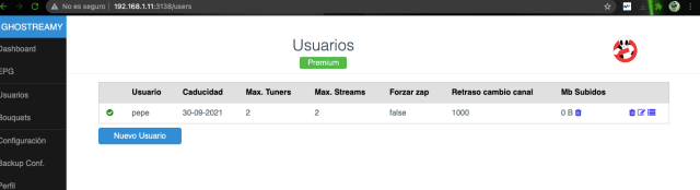 Podemos crear diferentes usuarios a los que podemos dar acceso al visionado de nuestro receptor.